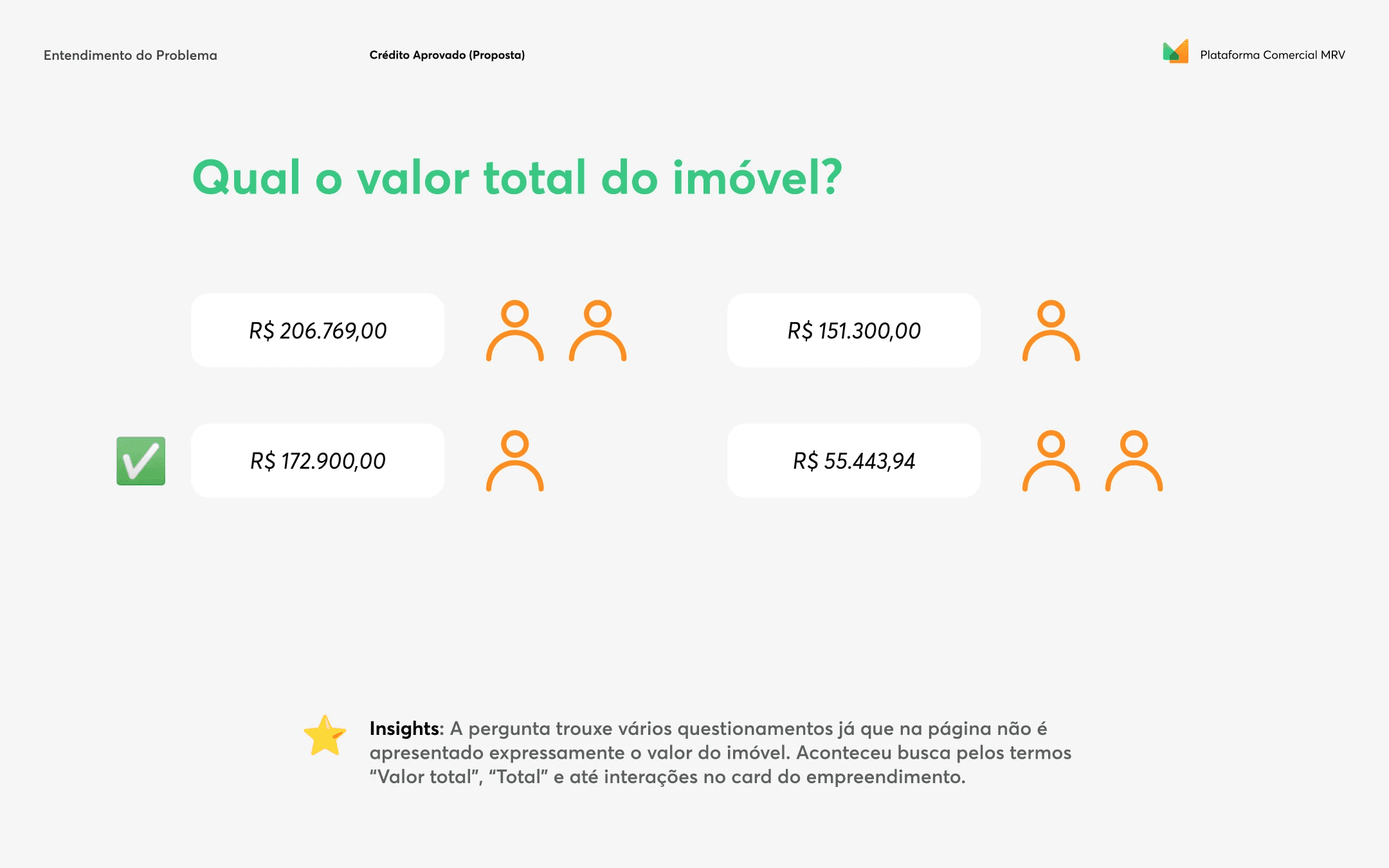 Na MRV, a proposta de compra é uma etapa decisiva da jornada do cliente. É o momento em que as condições financeiras são apresentadas e a negociação tem início. Apesar de sua importância, essa etapa era uma das menos compreendidas por clientes, corretores e até mesmo por times internos da MRV.